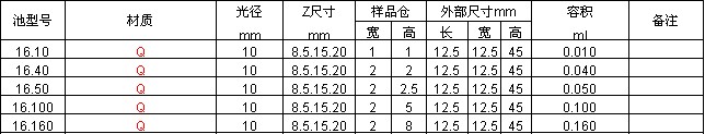 帶蓋子亞微量方形池,體積:10ul-160ul,Type 16