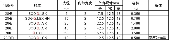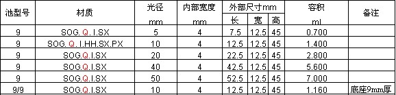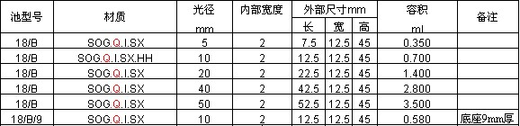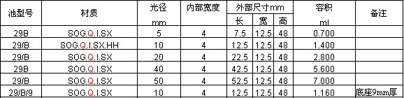 黑體池,備有非密封蓋半微量方形池 Type 9B