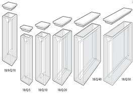 方形池可應(yīng)用于大多數(shù)紫外/可見區(qū)域的常規(guī)分析。最常規(guī)的類型的池子,均為兩面透光并且符合國際標(biāo)準(zhǔn)尺寸。10mm光程尺寸可以適用于絕大多數(shù)使用方形池的儀器。光程從1mm至100mm可選。您需查閱您儀器的使用手冊來確定是否需要一個(gè)用于更長光路比色池的池支架。