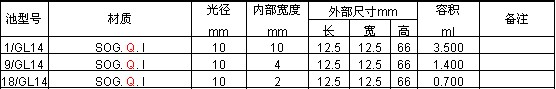 帶有螺紋蓋(帶或不帶隔膜)的標(biāo)準(zhǔn)方形池 Type 1、9、18/GL14