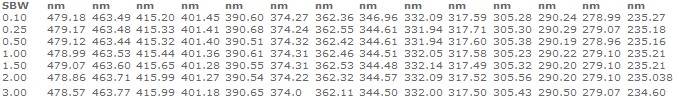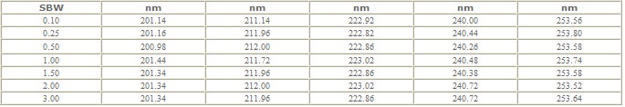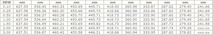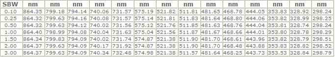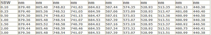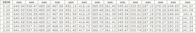 | 光譜帶寬(nm) | 0.5 | 1.0 | 1.5 | 2.0 | 3.0 |
