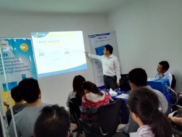 培訓主講人是我司一位擁有多年一線使用經驗的工程師和產品經理--施東健。培訓期間,工程師著重講述了Bio-logic電化學工作站的使用和匹配使用的軟件操作以及一些使用時的技巧等相關內容。在培訓工程師和其他參與人員的共同努力下,學員們都收獲頗豐!