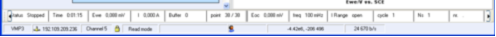 狀態欄底色出現黃色,一般代表此時實驗測試的過程為氧化過程,或者為充電過程。比如CV測試中,氧化反應階段,軟件狀態欄就顯示黃色;或者GCPL過程中,充電過程狀態欄也顯示為黃色。