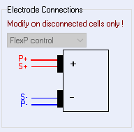 如果VMP3系列電化學(xué)工作站已經(jīng)連接了某個(gè)大電流儀器,那么Electrode Connections下面會(huì)出現(xiàn)相應(yīng)的特殊的電極連接方式。比如,電化學(xué)工作站連接了Flex P系列的儀器,那么Electrode Connections下面會(huì)出現(xiàn)“FlexP control”的選項(xiàng),如下圖: