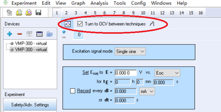 EC-Lab軟件中,右側實驗添加框中,一次實驗最多可以添加20種實驗技術??梢詽M足不同的實驗需求,尤其是同一樣品需要連續做不同的實驗測試時,EC-Lab完全可以實現用戶的需求。本文主要介紹添加多個實驗技術時的一個小技巧:給current range的轉換一點兒時間。