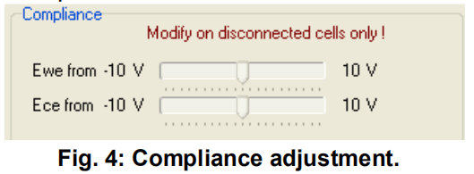 | 請注意儀器的最高控制電位: 如果主通道連接至控制電位量程為[-10:+10]V的booster,如2,5,10或20A的booster,這時可以在“Advanced Settings”中調節控制電位量程(如Fig.4)。整個模組的控制電位量程可調節至[0;20]V。 如果主通道連接至其他控制電位量程的booster,如80A/[-3;+3]V或100A/[0.6;5]Vbooster,或LB-2000[0;50]V,這是整個模組的最大可支持電壓取決于booster自身的電位量程。所以,如果主通道連接至LB-2000,那么控制電位量程即為[0;50]V。如果連接至80A booster,控制電位量程則為[-3;3]V。 |
