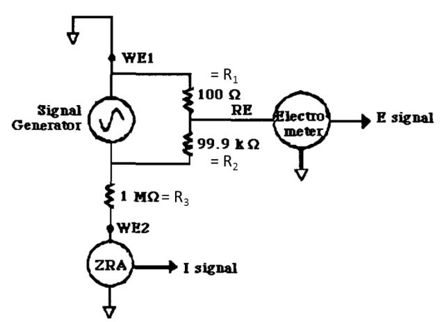 EC-Lab采用ZRA技術進行噪聲測量。在這項技術中,恒電位儀在對電極(CE)和工作電極(WE)之間保持0 V的電位差,并測量CE和WE之間產(chǎn)生的電流,也測量CE/WE體系與參比電極之間的電位差。