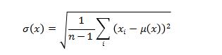 分布值x的標準偏差為: