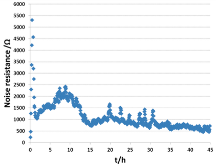 圖2:ASTM中AISI1018鋼在0.1M檸檬酸中的電化學噪聲阻抗