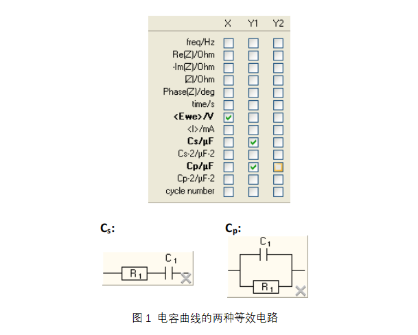 根據(jù)預(yù)想的模型電路,計算兩種類型的電容,Cs或Cp。電容Cs對應(yīng)于R+C(串聯(lián))電路的電容,Cp對應(yīng)于R/C(并聯(lián))電路的電容(圖1)。