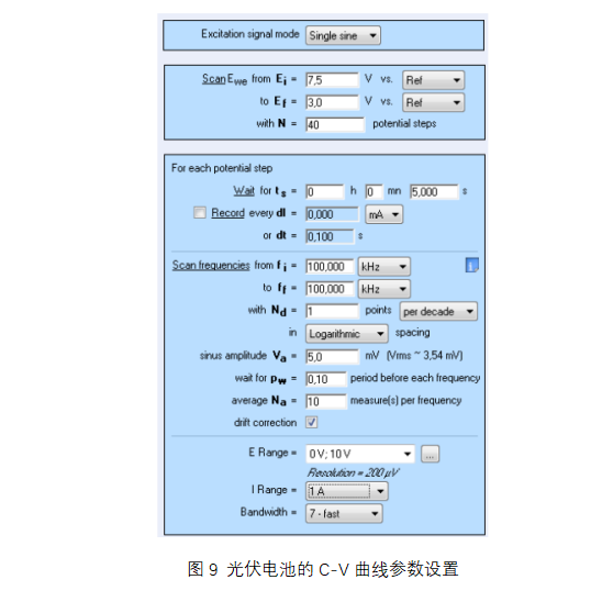 使用配備超低電流選項的SP-200或SP-300和EC Lab?軟件進行研究。對于這兩個系統(tǒng)(即varia電容器和光伏電池),采用標(biāo)準(zhǔn)的雙電極連接進行了研究。